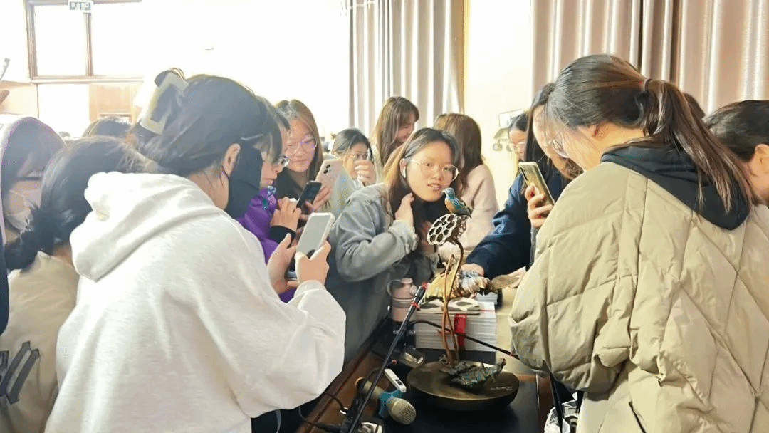 赵敏先生介绍了中国古代青铜焚失法铸造技艺的原理和历史地位、他带领铜官府公司团队发掘传承非遗技艺的过程,以及结合非遗技艺创作的“写真铜艺”作品,并且分享了自己的创作构思和创作心得,以自己对艺术创作和人生经历的思索,勉励老员工们不负韶华、努力学习、绽放才华。讲座过程中赵敏不时与师生进行互动交流,引发阵阵掌声。讲座结束后铜官府向tyc122ccVIP捐赠了赵敏主编的《写真铜艺》一书,同学们纷纷请赵敏签名。