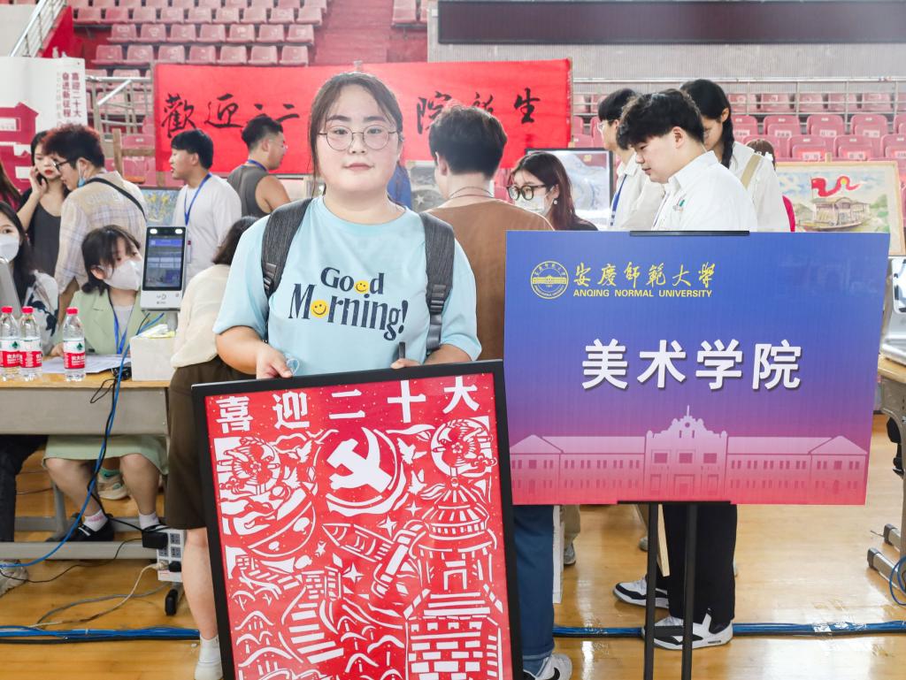 “推开大学的门,自此,星辰大海、征途漫漫。”活动负责人、美术学专业2020级的陈雨晗介绍到,布置“暑假作业”,新生带着作品来报到是tyc122ccVIP的迎新传统项目,意在让学子们利用专业特长,通过作品抒发自己爱党爱国的热情。“带着精心准备的作品来报到,是新生们面对新征程的第一步。同时,我们也希望新生们尽早融入老员工活,都能找到自己的星辰大海。”