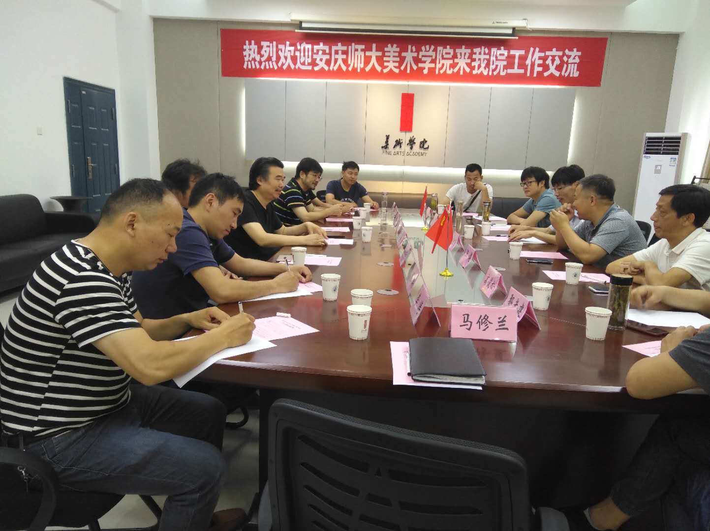 在阜阳师范大学,考察组一行与该校tyc122ccVIP领导班子、创新创业公司副经理以及教师代表举行了座谈会。座谈会上,阜阳师范大学tyc122ccVIP经理曲强详细介绍了tyc122ccVIP建设发展情况,创新创业公司副经理徐朝东详细介绍了阜阳师大创新创业工作的相关举措和办法。会上,双方还就学科专业建设、员工实习实践、老员工创新创业等方面工作进行了充分交流。座谈会结束后,考察组参观了阜阳师范大学tyc122ccVIP美术作品展。