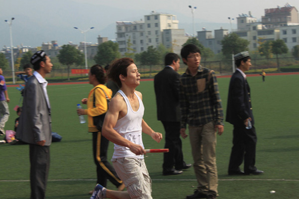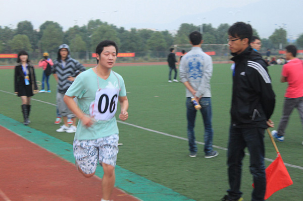 “柯望、赵明、王元昊、阮健……,加油、加油……”在100米和4×100米预赛中,他们奋力奔跑,但始终离胜利还差那么一点;5000米的跑道上,第一集团已经早早地冲过了终点,但宋近传、周保安仍在坚持完成比赛……虽然没有拿到名次,但他们没有放弃,写在他们的脸上是顽强、是参与的喜悦……因为“我参与,我快乐;我运动,我健康”。