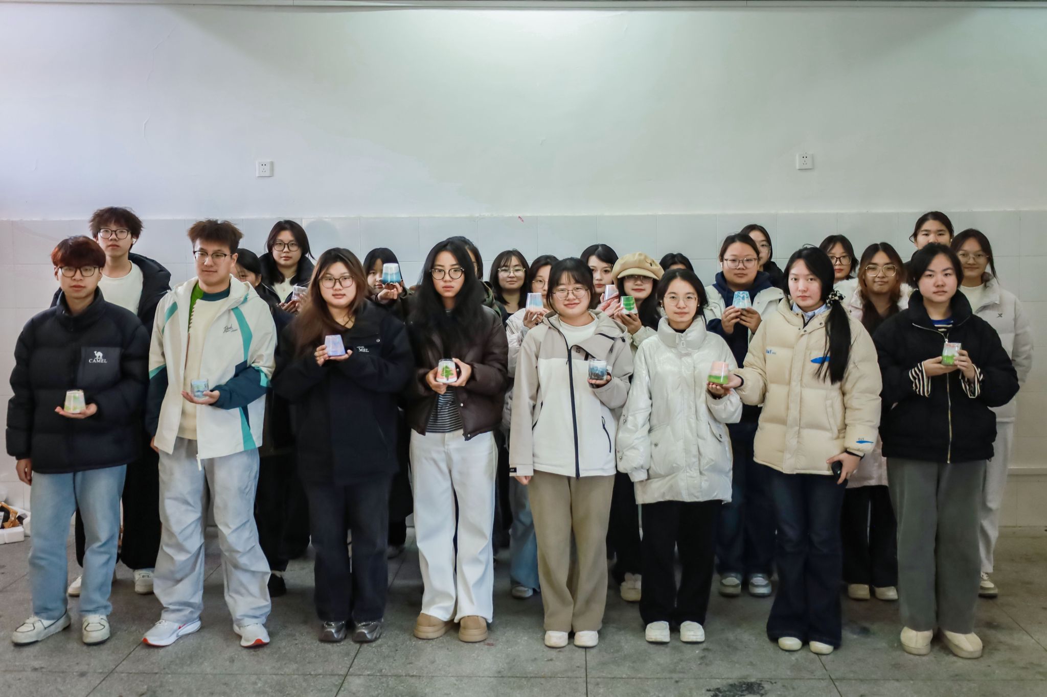 “活动筹备初期,我们曾计划制作香薰蜡烛,但考虑到明火在公共空间存在安全隐患,最终确定无火沙画香薰方案。”活动负责人、美术学专业2024(2)班的方晓茹介绍,团队提前前往各教学楼值班室沟通作品摆放事宜,在征得许可后有序推进各项工作,力求以稳妥筹备传递志愿服务的温暖。