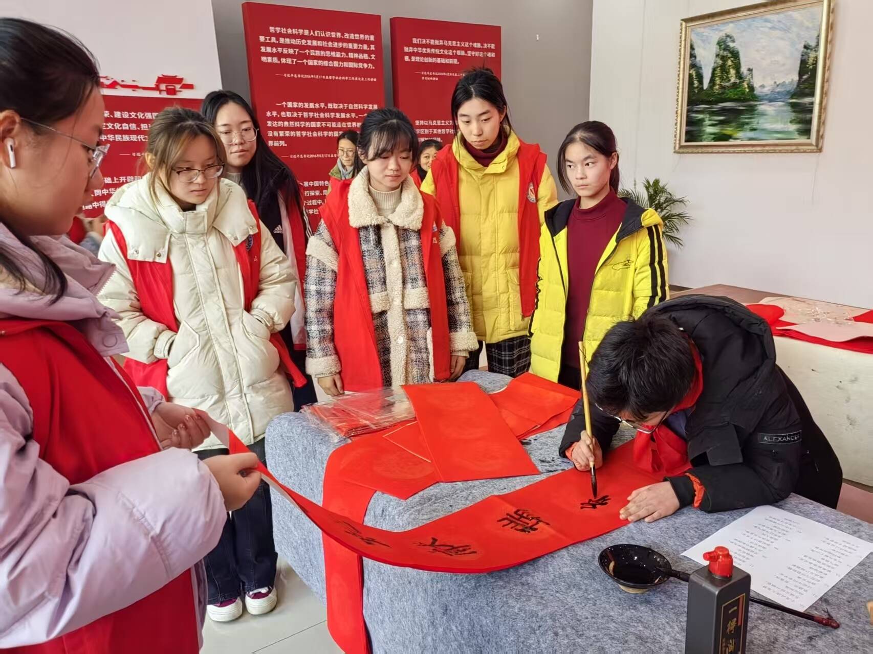 参与活动策划、集思文创设计、引导展厅游客……返回家乡后,这些活动成为了美术学专业2024(2)班的尹嘉欣的日常。“返家乡”活动陆续开展后,她报名了宿州美术馆的志愿工作,并在百人面试中脱颖而出。“在公司参与过许多相关的活动,同时有着俱乐部的学习经验,掌握了许多专业技巧,我想这是我成功留下的重要因素。”尹嘉欣与美术馆负责人、专业人员进行了深度交流,提升了职业素养和就业能力。据她介绍,她参与策划的非遗拓印、春节档做灯笼、猜灯谜活动已逐步提上日程。