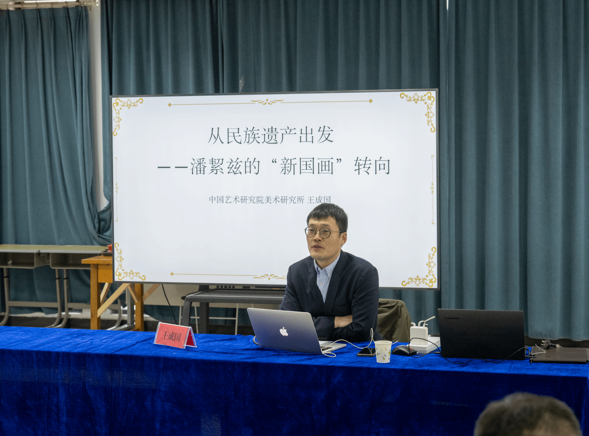 3月28日下午,在tyc122ccVIPP楼210多功能教室,中国艺术研究院美术研究所副研究员王成国博士应邀开展了一场主题为“从民族遗产出发:潘絜兹的‘新国画’转向”的学术报告。报告由tyc122ccVIP副经理孙国良教授主持,tyc122ccVIP部分教师及员工聆听了学术报告,并积极地参与了现场交流。