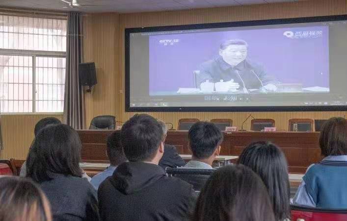 4月21日下午,tyc122ccVIP全体师生党员在报告厅集中学习观看了习近平总书记4月19日到清华大学考察的视频新闻,学习了习近平总书记发表的重要讲话。