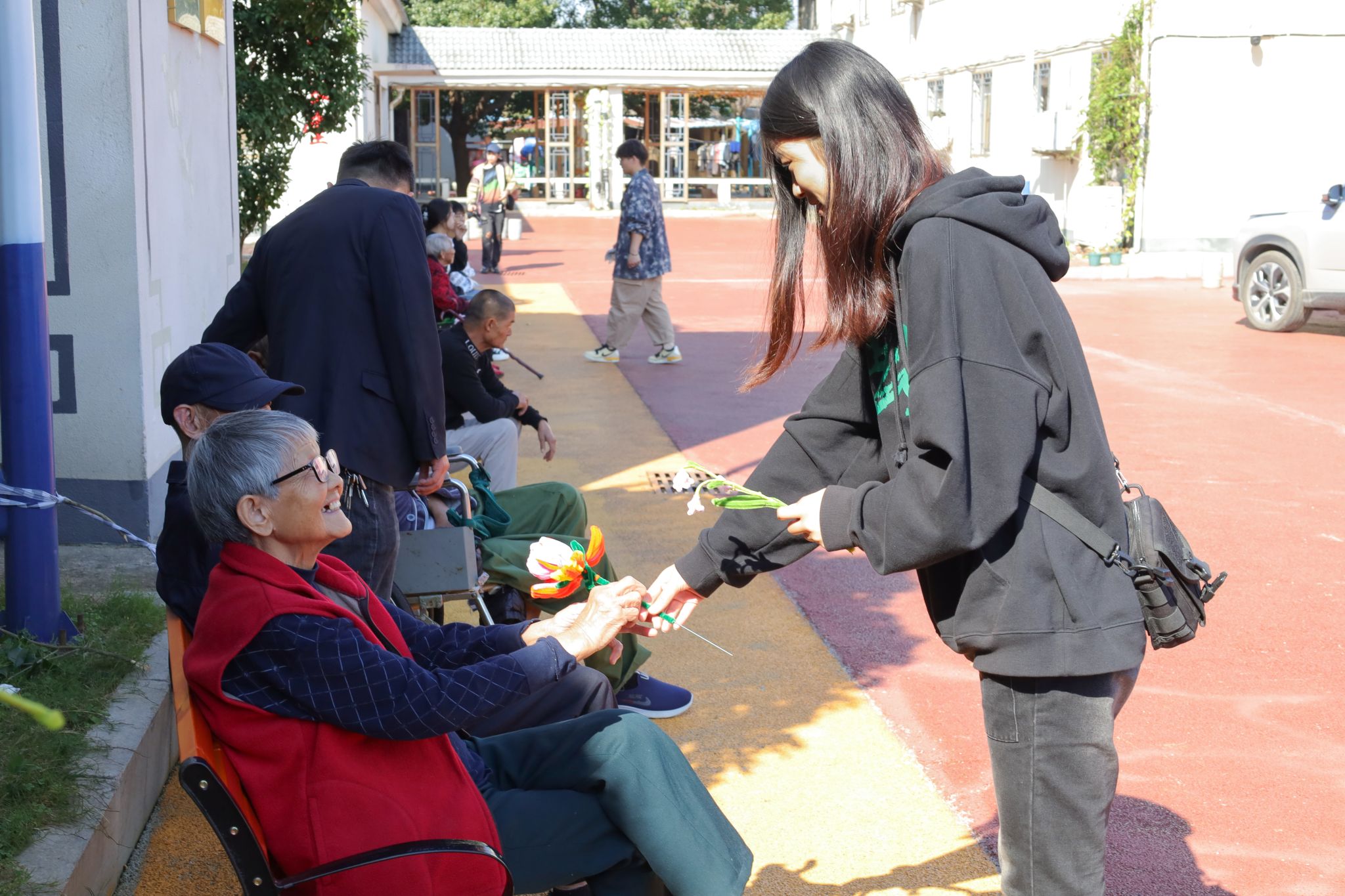 一朵朵手工制作的扭扭棒永生花象征永恒、即拍即得的拍立得照片定格瞬间、柔软保暖的围巾抵御秋冬寒风……重阳节来临之际,安庆市大观区怡康养老服务中心的老人们收到了别具一格的节日祝福。10月21日,公司开展“九九重阳节,敬老爱老行”志愿活动,公司“弘美”志愿服务队20余名学子为53位老人送去心意满满的节日惊喜。